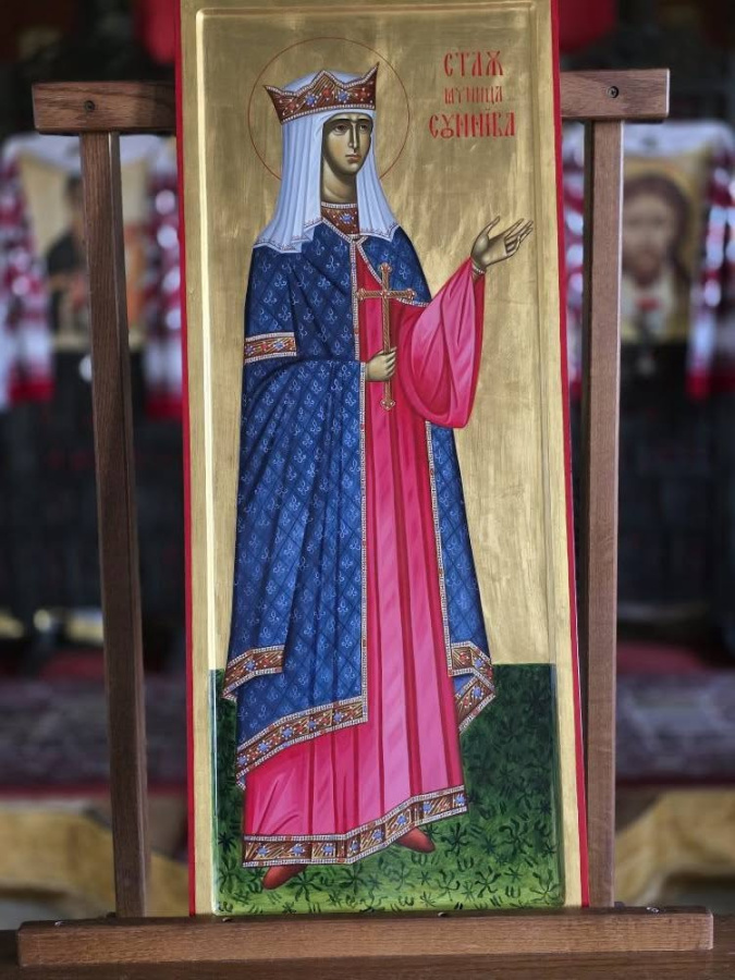 Среди икон есть иконы святых Норвегии — святой мученицы Суннивы и святого Халварда.
