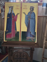 Se hvilke vakre (og, håper jeg, også undergjørende) ikoner som er blitt malt til vår kirke i løpet av 2025. Dette er ikoner til ikonostasen. Vi har nå fullført én hel rad — hierarkrekken. Nå arbeider vi med ikonet av den hellige erkediakon Laurentius, som er paret til den hellige erkediakon Stefan; disse vil bli diakondørene. Deretter gjenstår det bare litt til :) profetraden og festrekken, samt ytterligere fire store ikoner til den lokale raden.